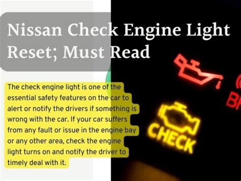Web when your nissan check engine light stays on, it means the onboard diagnostic (obd) system has detected a malfunction with the way the engine is running,. Once the engine is cool, check the oil level and add oil if necessary. Web the check engine light can be reset by disconnecting the battery, but this should only be done if the problem that caused the light to come on has been fixed.
